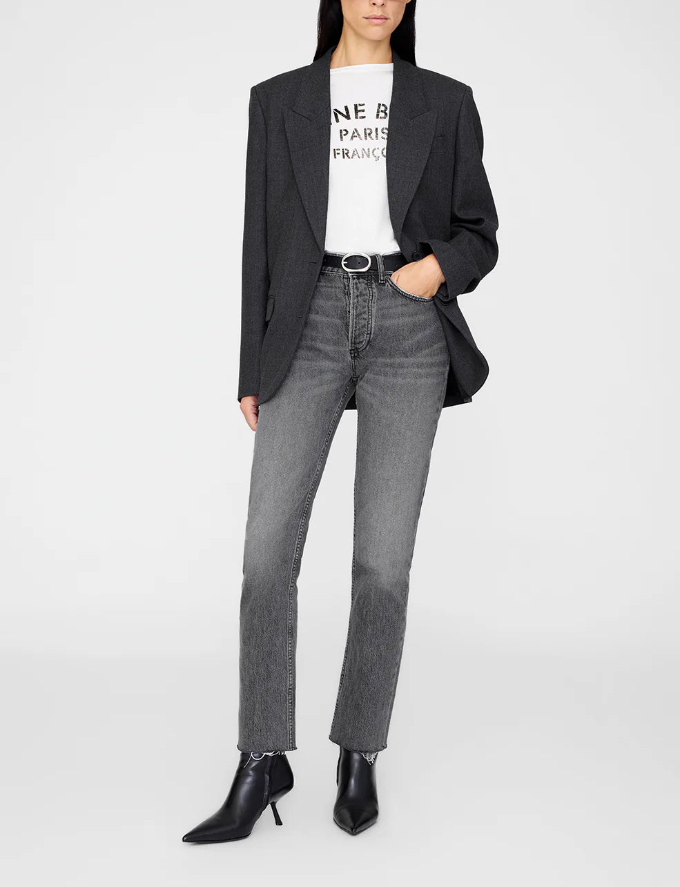 An everyday belt made from smooth 100% cow leather in black featuring a timeless, signature-link buckle with subtle ANINE BING branding.