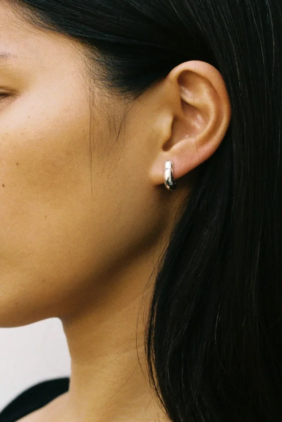 Sculptural hoops fastened with a hinge snap closure