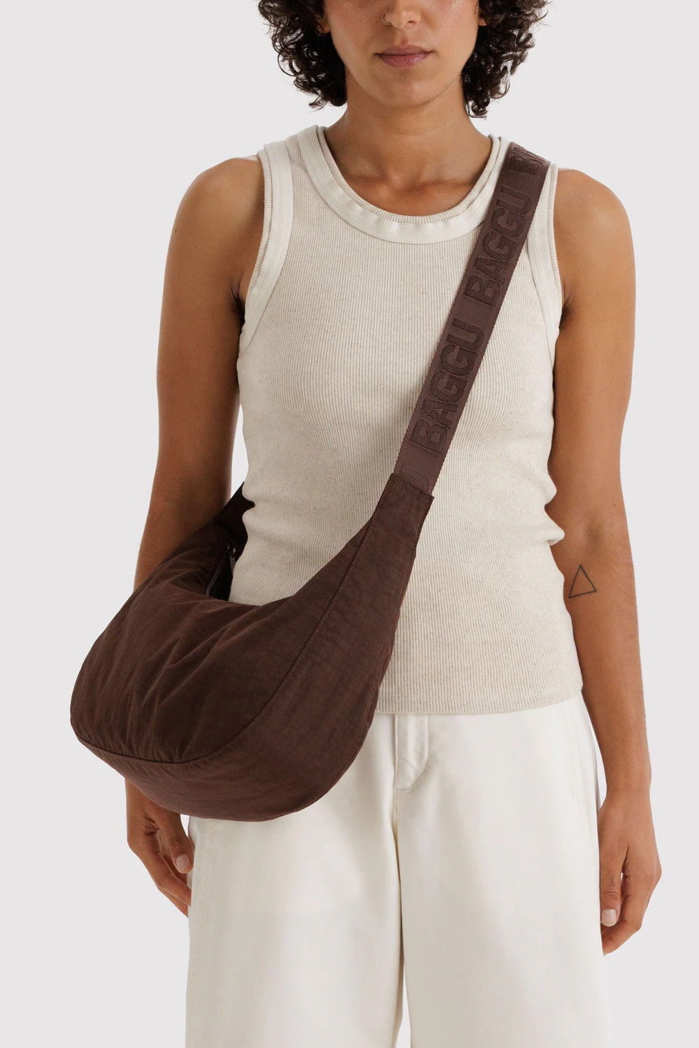 Practical doesn’t have to be boring. Baggu's Medium Nylon Crescent Bag is effortlessly casual and large enough to carry more than just the essentials. Wear it slung over your shoulder or crossbody for a hands-free experience. Complete with two interior pockets that make it easy to stay organized.