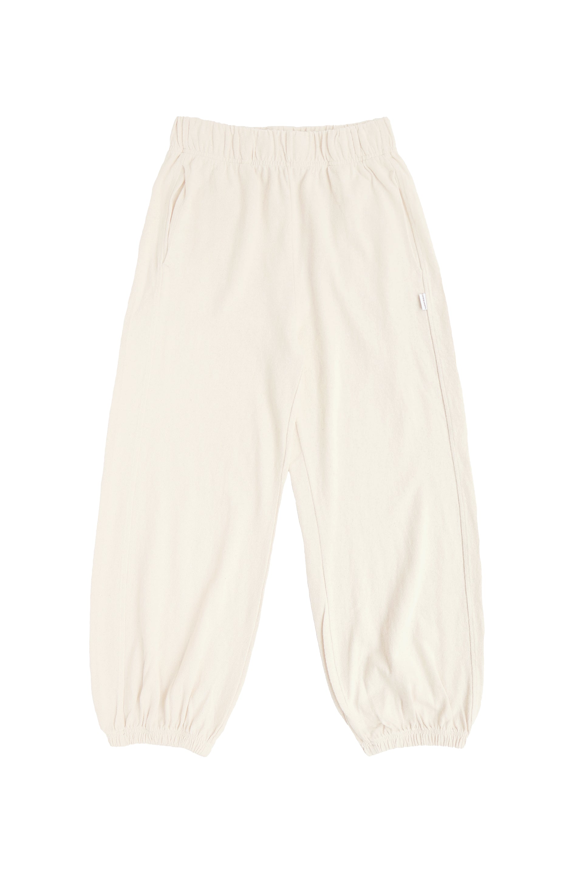 Heavyweight cotton pants with an elastic leg opening.