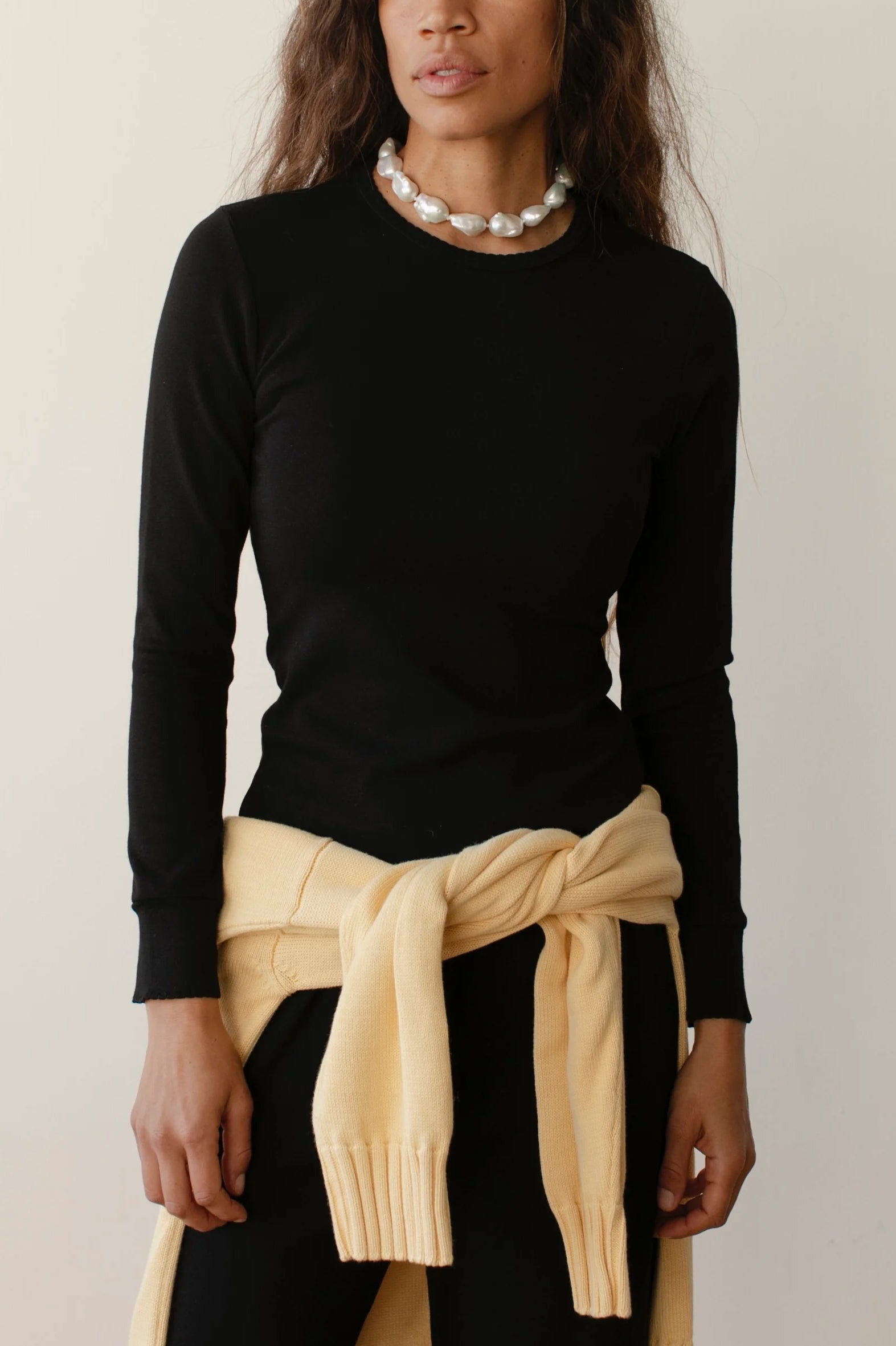 The Baby Rib Scallop Long Sleeve is crafted from Donni's dreamiest, butter-soft fabric—it's like a hug from a stick of butter (you truly have to feel it to believe it). Designed with a classic crewneck, slim-fit, and finished with scalloped edges along the neckline and cuffs.