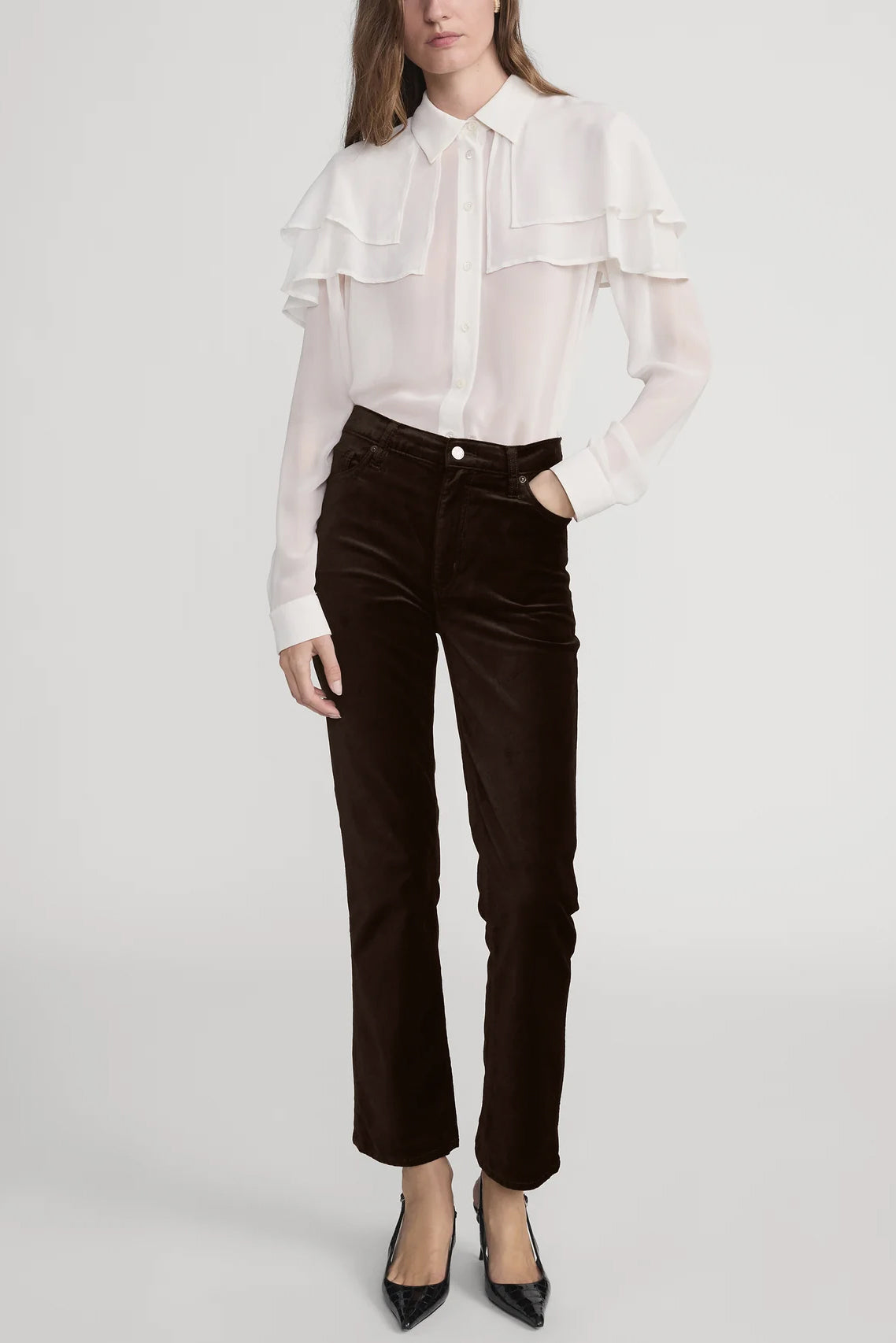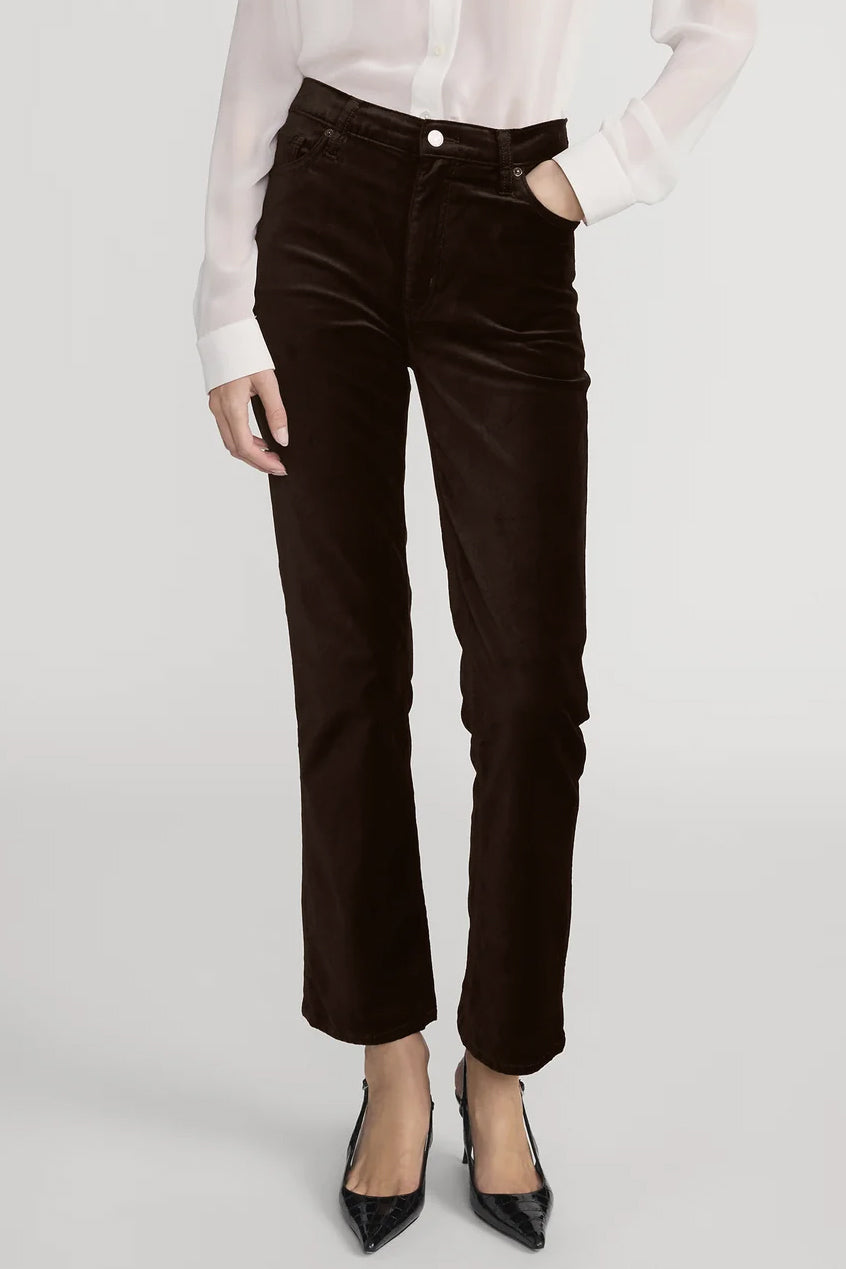 This pant is fitted through the hip and thigh, extending into a slim leg with an ankle-length inseam.