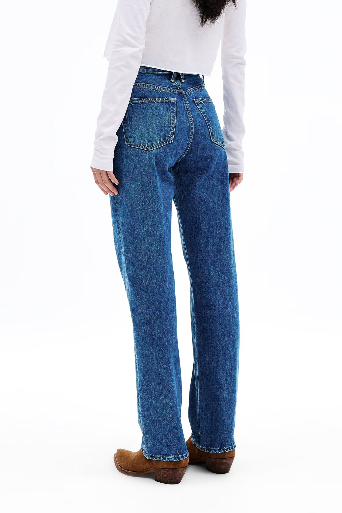 Brushed antique button and concealed zip fastening at front. Sweet Memory wash is crafted from 100% rigid cotton and features a timeless indigo shade, delivering a modern and effortless look.