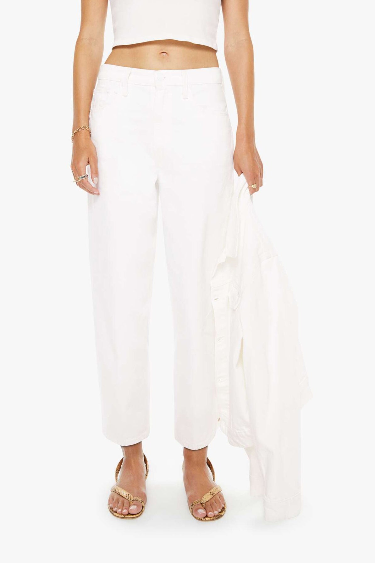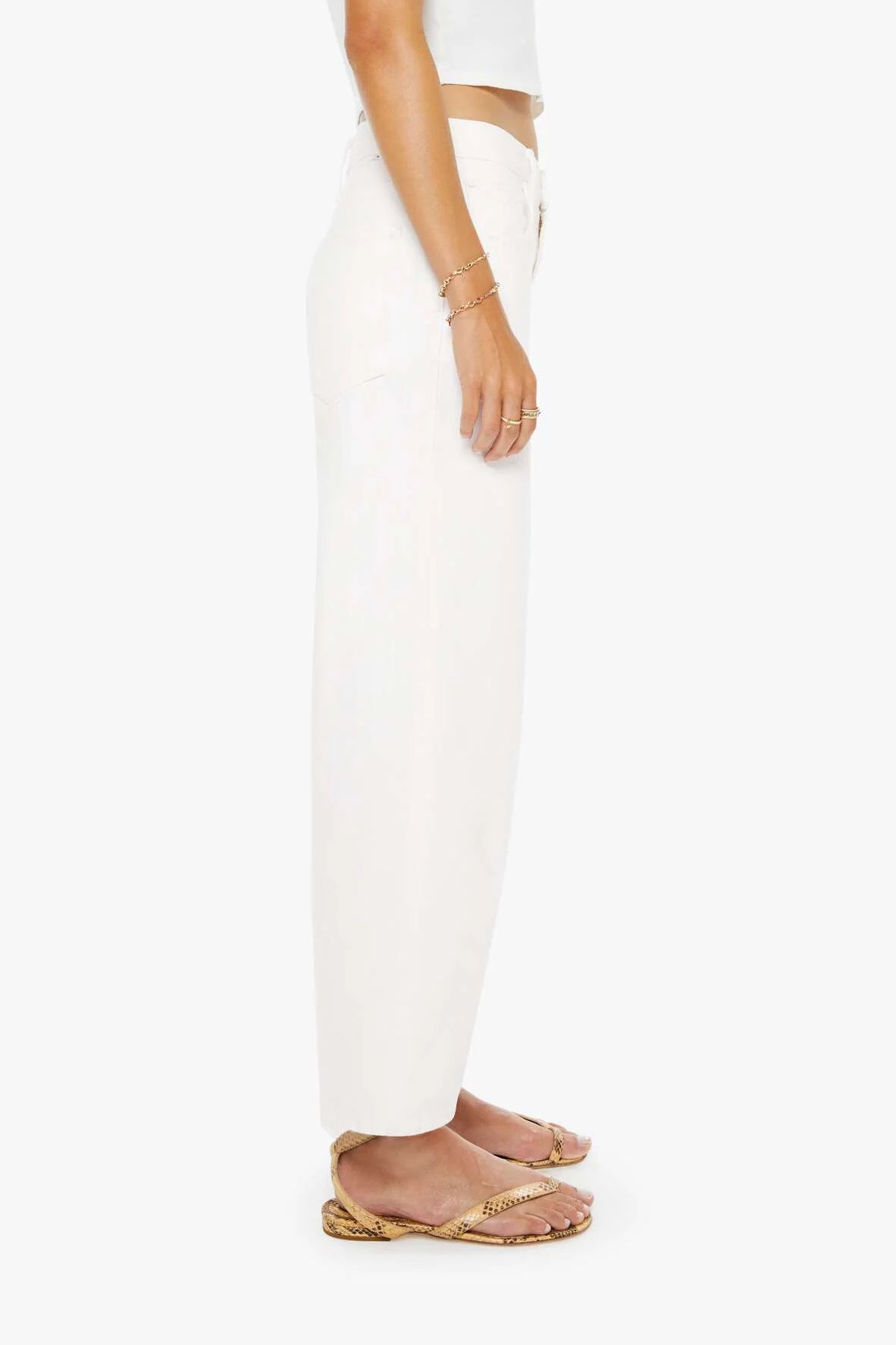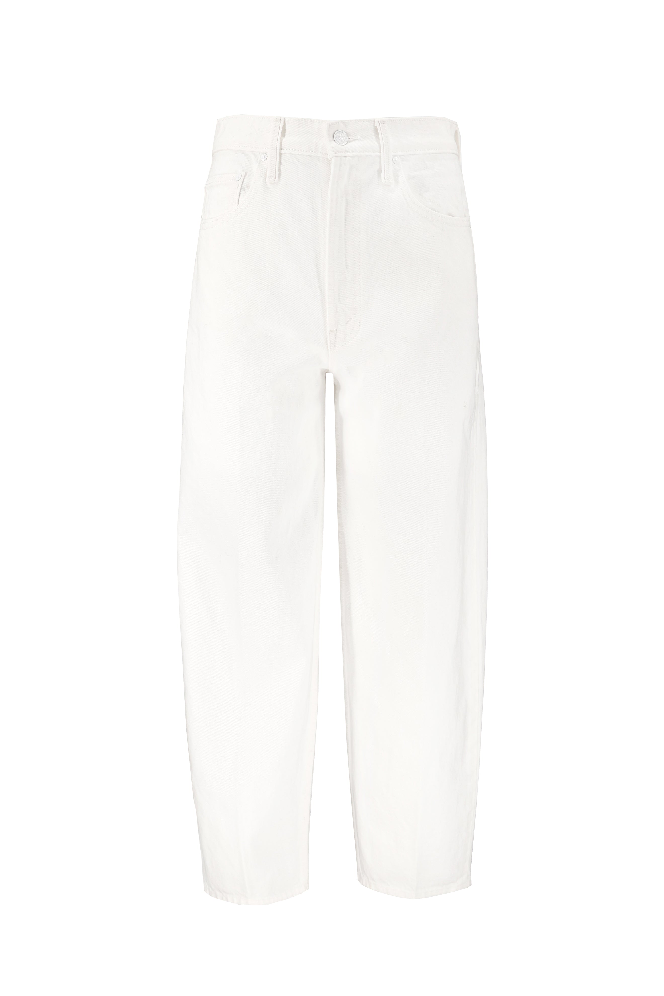 Super high-waisted barrel jeans with a zip fly, ankle-length inseam and a clean hem. Made from rigid 100% cotton, Picket Fence is a brilliant, clean white that serves as the perfect neutral.