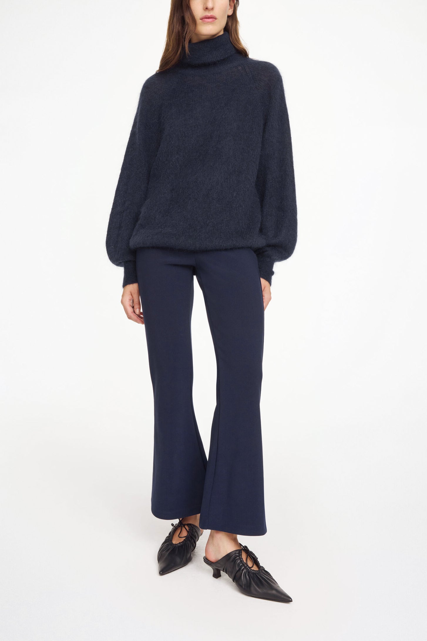 By Malene Birger Vilanna trousers made from a luxurious blend of materials. The design has a comfortable mid waist, flared silhouette, and cropped legs. Wear it throughout the week with an oversized blazer and knitwear.