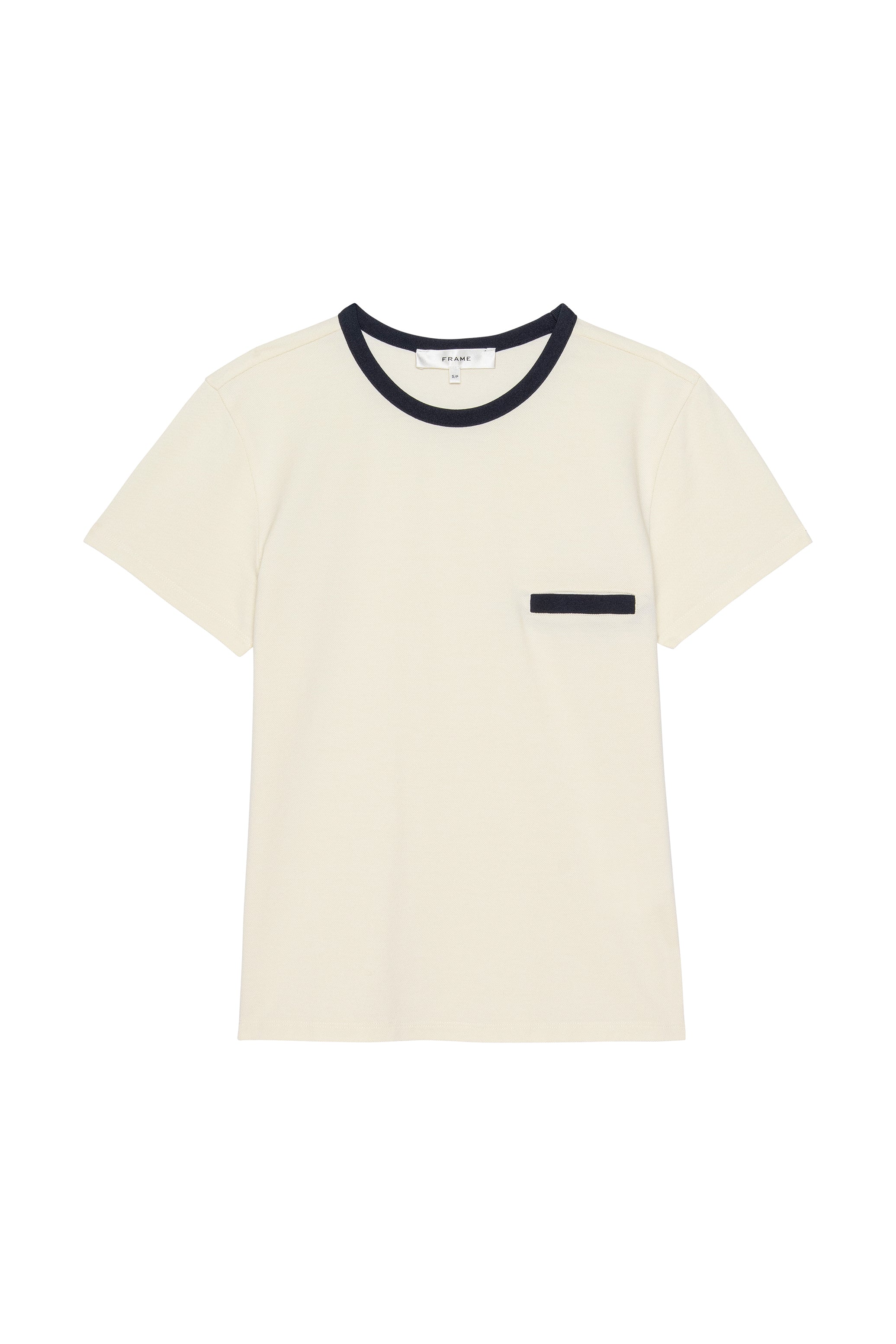 The Pique Baby Tee is crafted from 100% cotton with a soft textured finish, offering a fitted silhouette and tonal trim for understated everyday polish. The slim-fitted silhouette makes this tee perfect to wear as a base layer or alone.