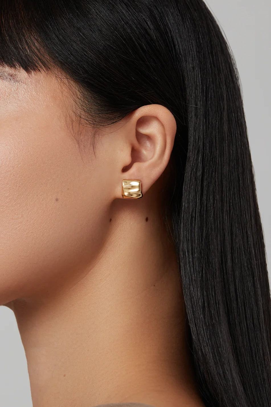 These tiny gold stud earrings mirror a sand dune shaped by natural winds. Perfect for finishing an ear stack. Finished in high-polish 14k gold.