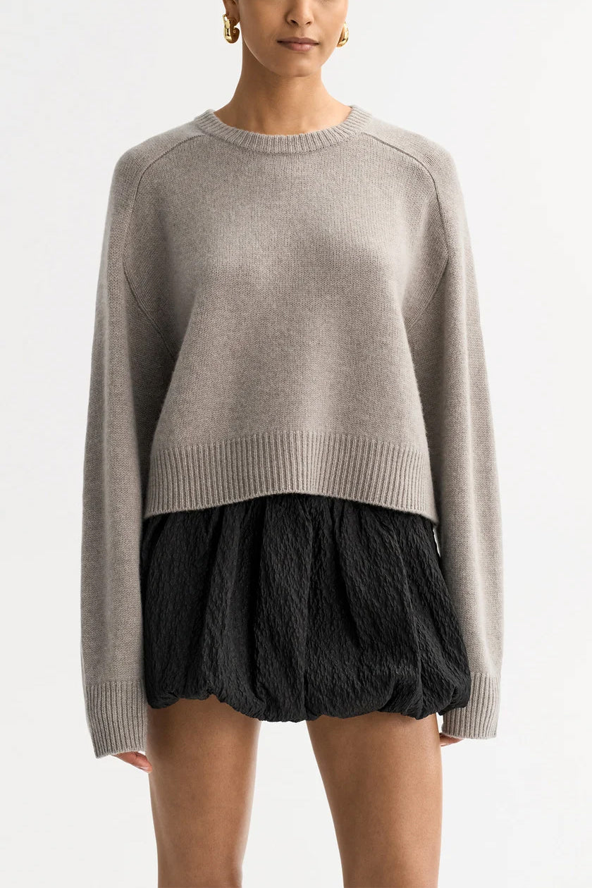 Slightly cropped crewneck sweater made from cashmere. Take your usual size.