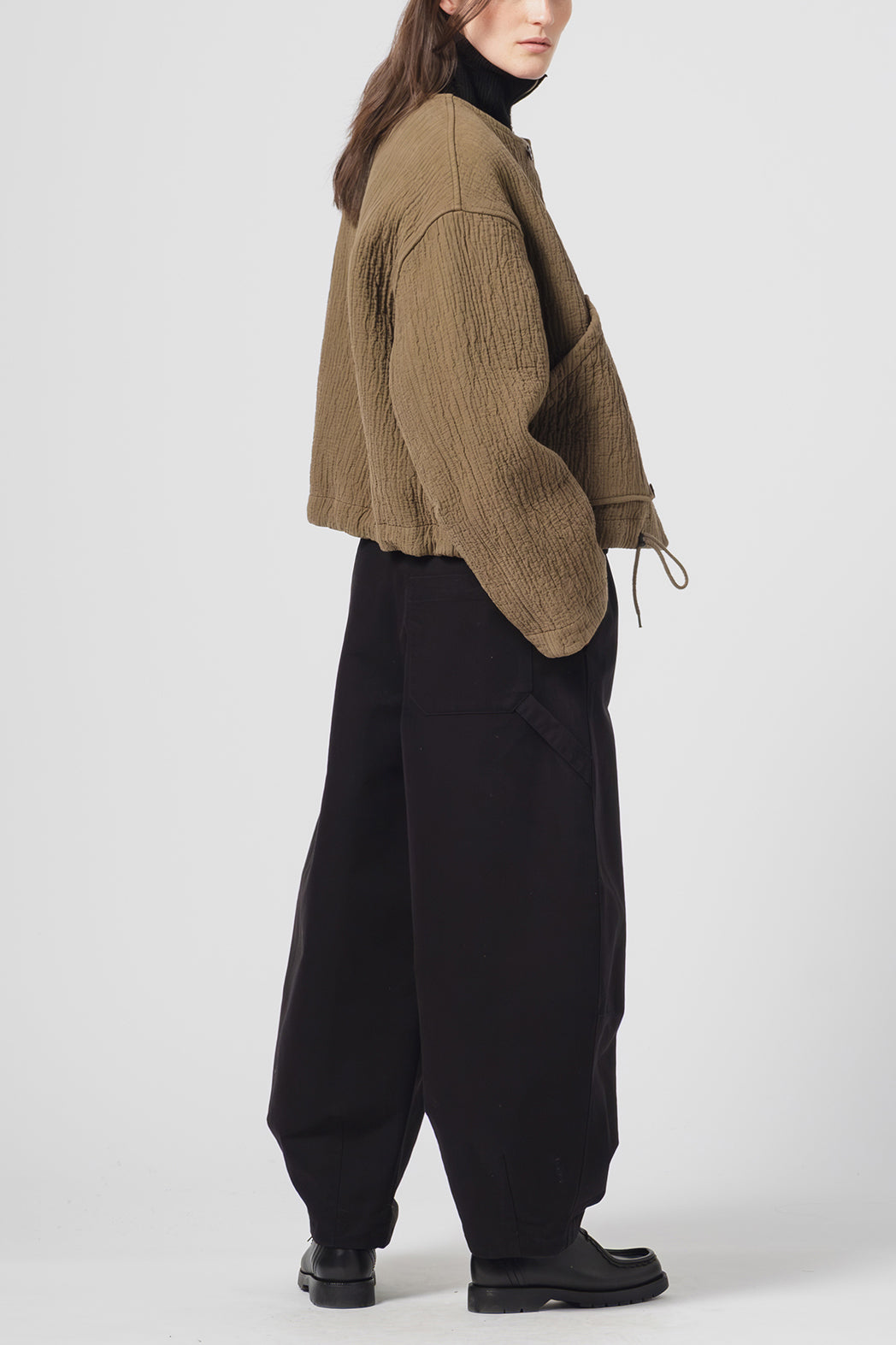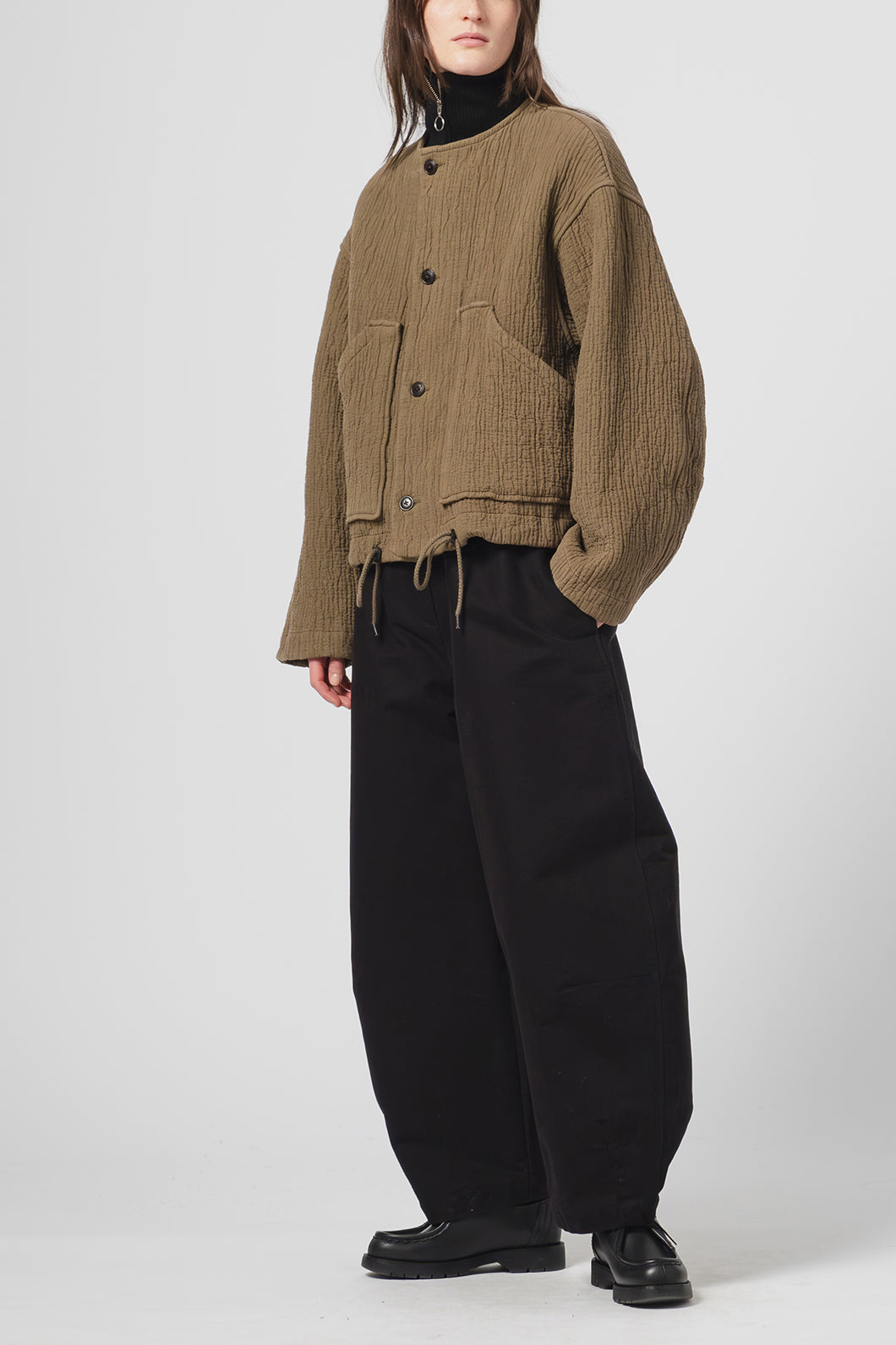 Based on a vintage army jacket, our Nuclear Jacket fits loose and boxy. A nonchalant style with a lot of attitude, meant to be worn loosely. It features 2 large front pockets, corozo buttons and a drawstring in the hem.