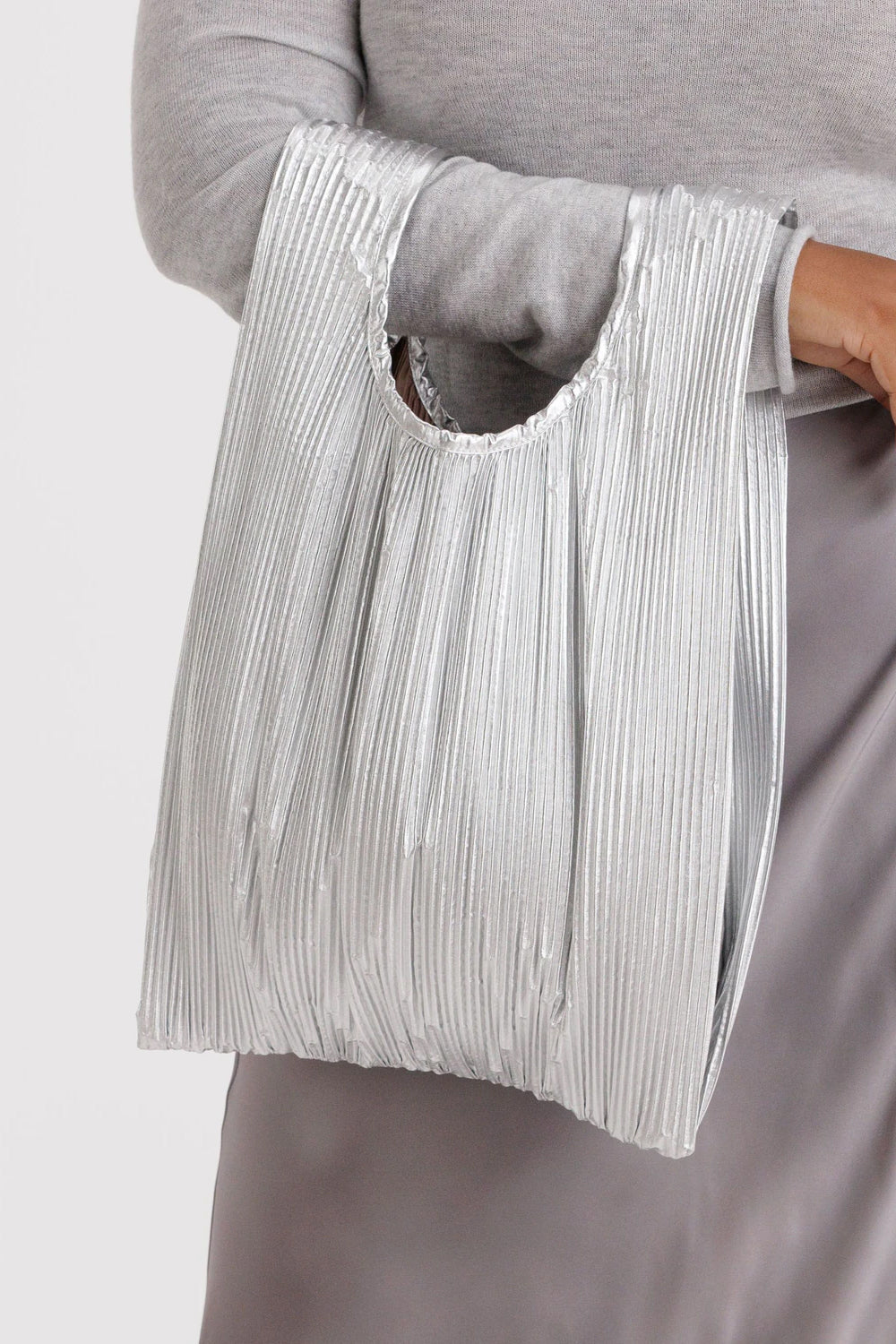 Pleated Baggu in Chrome Metallic