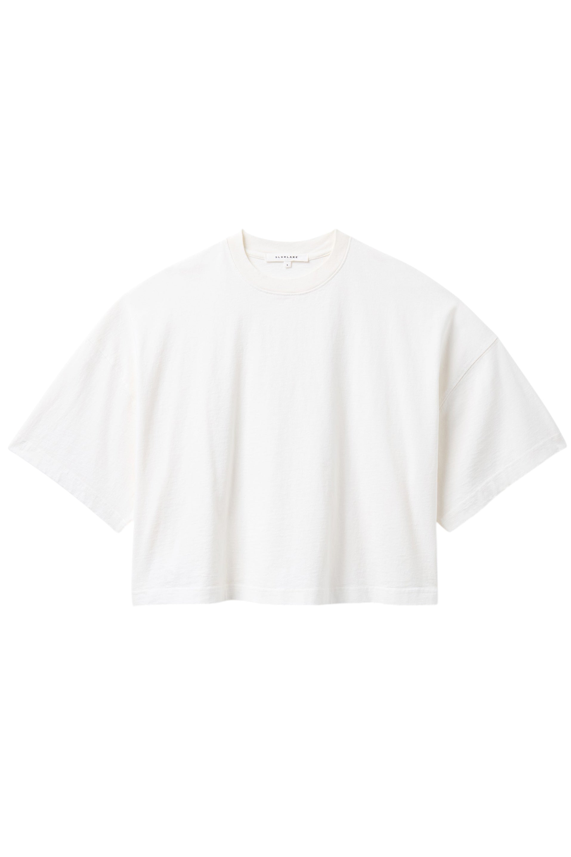 The Box Tee in Natural White from SLVRLAKE is a cropped boxy tee with short sleeves. Crafted from mid-weight cotton, featuring a vintage look and feel.