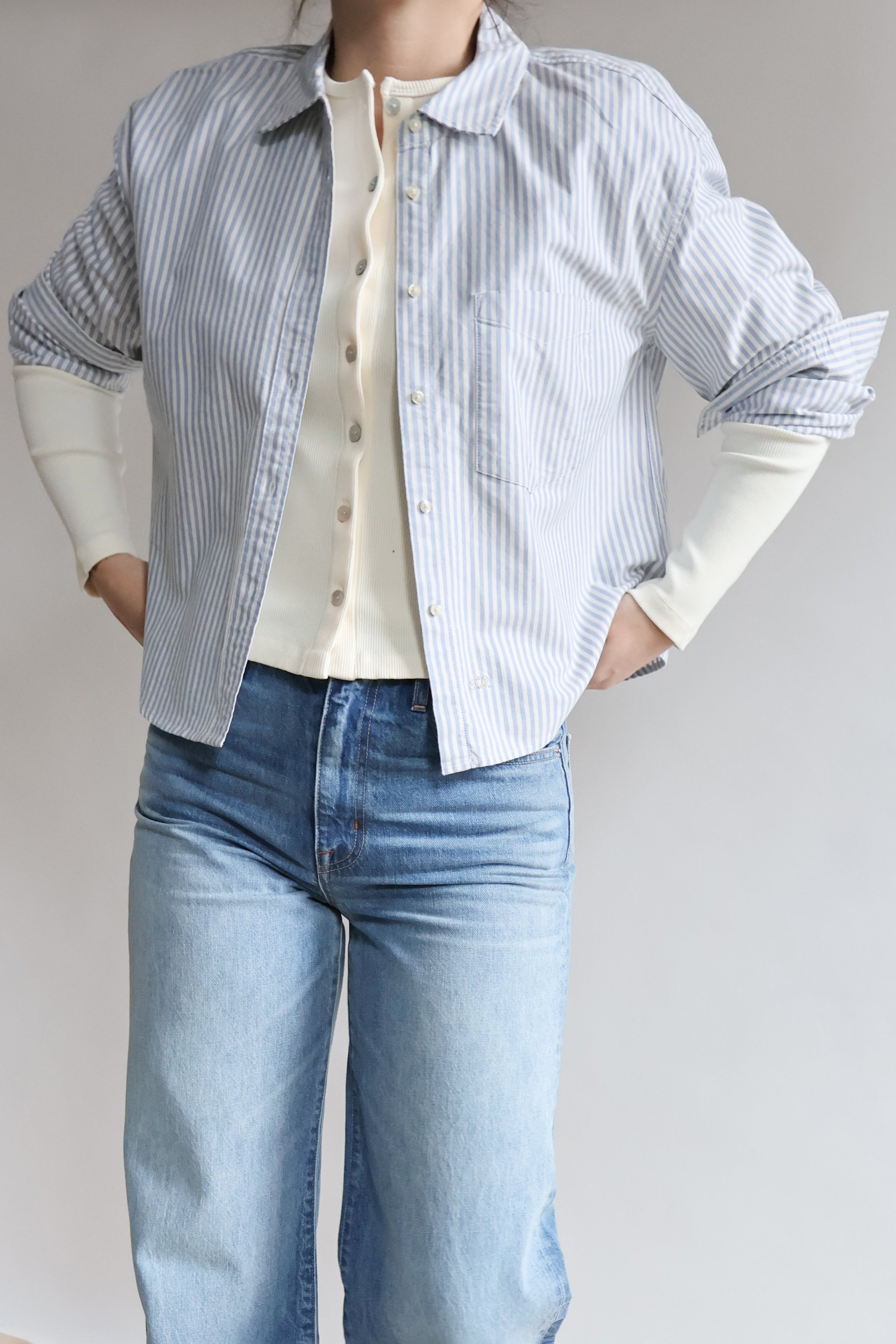 Cropped Oxford Shirt in Soft Blue