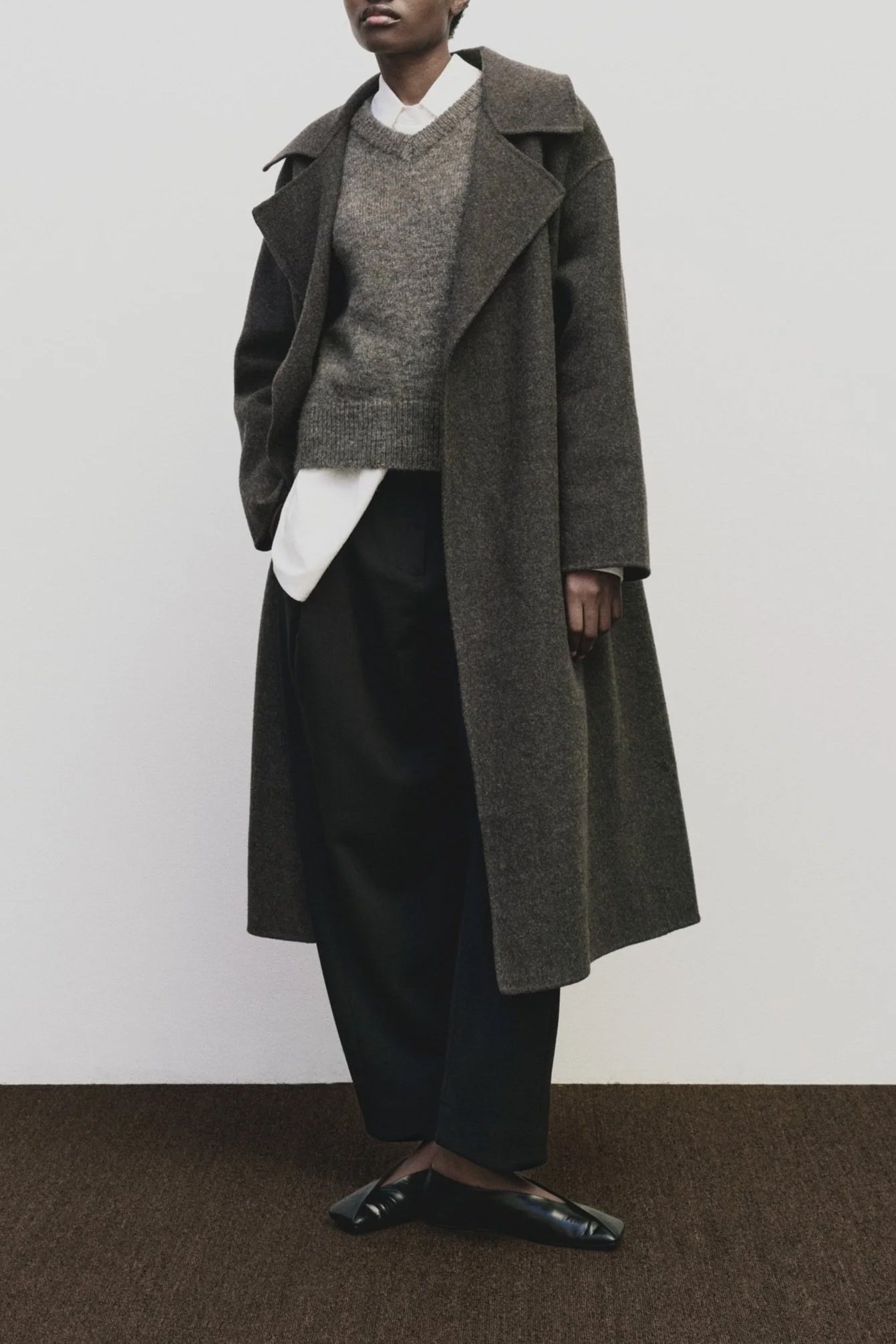 Oversized coat with a self-tie belt at the waist