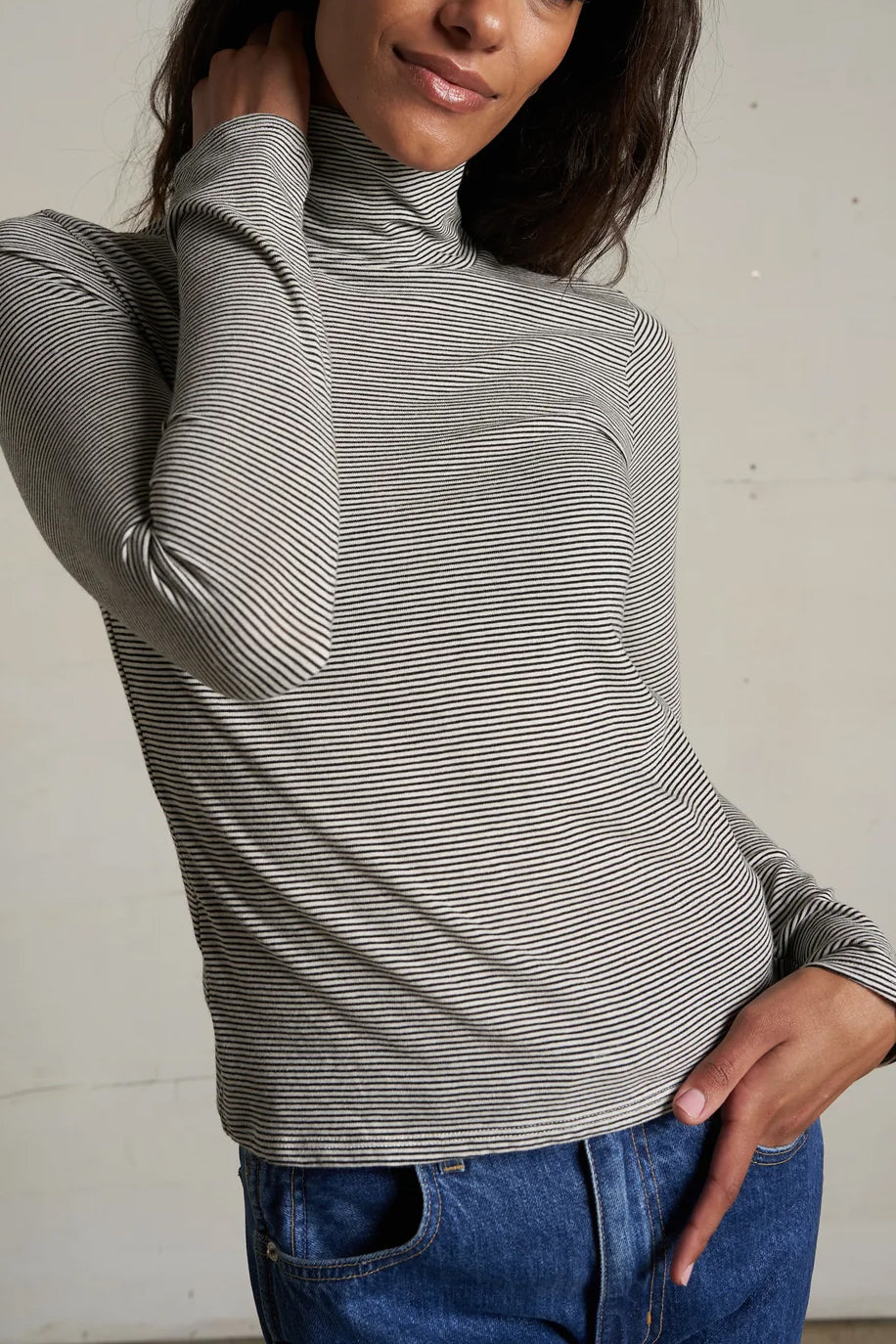 The cindy top is part of Perfect White Tee's recycled cotton collection. Softly structured with a close fit and lightweight feel, it’s designed with a classic turtleneck silhouette that hugs just right. this is the kind of piece that makes layering feel intentional, but it’s just as good worn on its own.