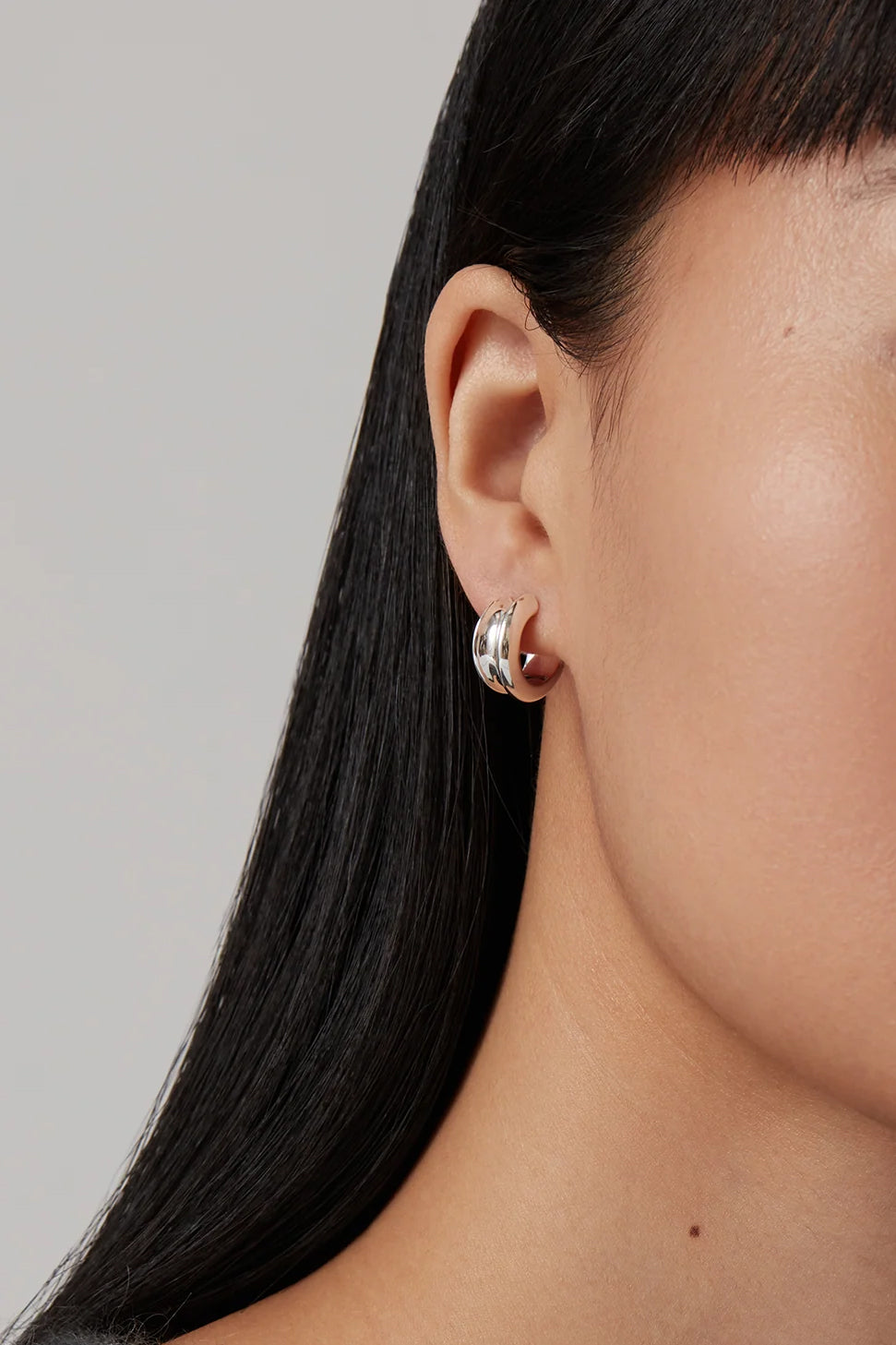 These small gold hoop earrings boast deep contours. Finished in high-polish 14k gold.