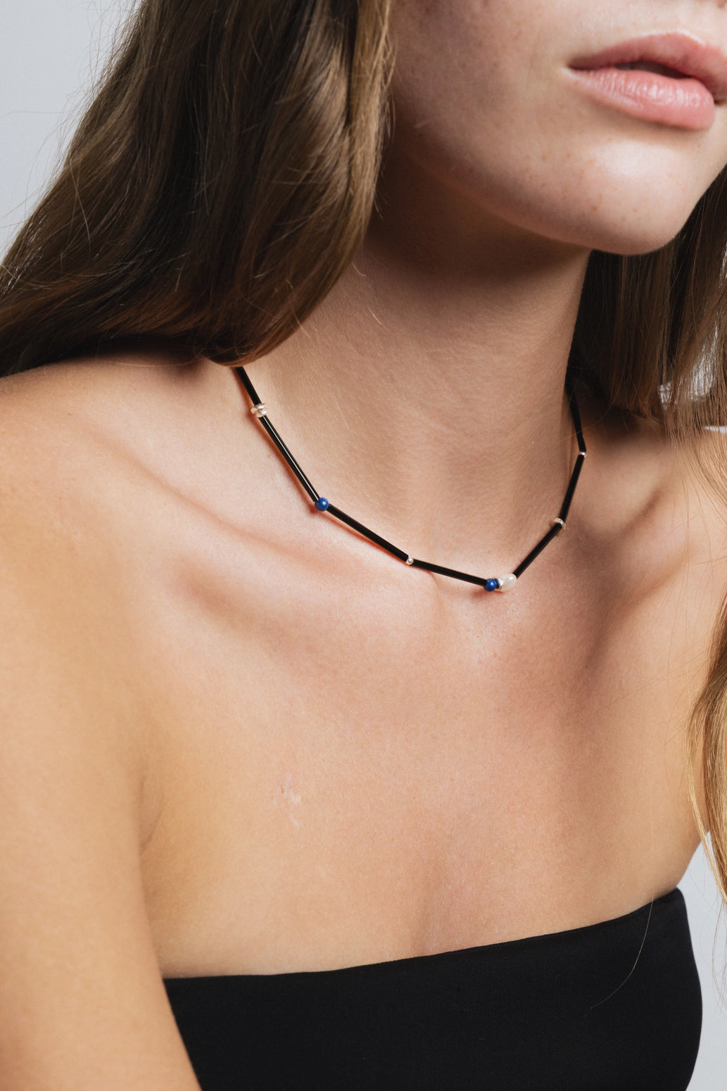 Includes blue lapis stones and freshwater pearls