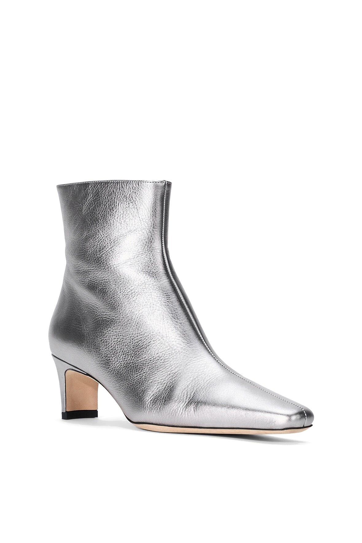 A metallic leather ankle boot, this style features a pointed rectangular toe and a blade heel. The Wally Ankle boot features a side zip closure.